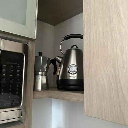 En el apartamento hay una cocina completa con una nevera y un horno, además de servicio de tetera/cafetera.